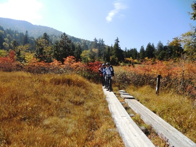 最高の天気の中、本日、全線木道歩きでハイキングがスタートした。 |