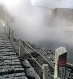 通路横の杭に、有毒ガスなので近寄るな!と書いてある。えっ!もっと目立つように書いておいて欲しいな。
