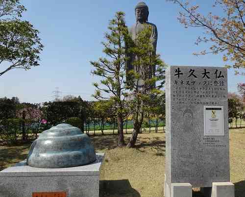 遠方から眺めてもある程度大さは伝わりますが、園内に入ると、大仏巨大さを思い知らされる資料がいくつも展示されています。![]() まず、頭部の大きさ。手前の頭部模型の、なんと1,000個分のボリュームがあるそうです! 写真では十分に伝わらないかも知れませんが、手前の模型も結構な大きさと重量感があります。ぜひ訪れて確かめてみて下さい。 ![]() こちらは実物大の螺髪(らほつ)。頭髪のパンチパーマのような部分の一つです。それが直径1m、重さ200kgもあります。 | |