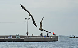 帰りは国道で帰ろうかと思ったけど、それもつまらないので、もと来た道を引き返し、広域農道に再アタック。 途中、磯原の街を眼下に見下ろす峠あたりで、ダブロク? W3? 旧CB? それともZ系? 逆光でよく見えなかったん ですが、そっち系のバイクの大集団(といっても十数台ぐらいかな?)とすれ違いました。でも旧車の割には、音が静か だったよな〜。タンクのエンブレムの形から、確実に数台のダブロクはいたと思うけど。どちら様(笑)だったんでしょ? で、クネクネ道をバキューンと(自分では走ってるつもり)で通り抜け、帰ってきました。 (実際は、速そうなバイクに何度も抜かれてたりします(^−^ヾ) ) で、せっきぃの住処付近の川では鮭の遡上が始まってるようでして・・・。