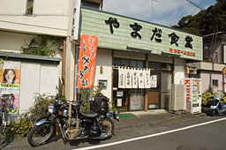 熱海駅前の東横インに到着。 シャワーを浴びた後、駅前の商店街へ飯を食いに。 ほかほかの温泉饅頭をほおばりつつ、しばし散策。 路地に入ったところにある食堂に入ってみる。 おっ、アジのタタキ定食があるよ。アジは今旬。これ、いってみっか♪