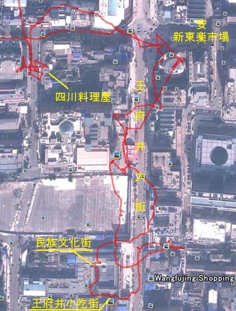 いよいよこの旅最後の観光地・王府井へ。 王府井(ワンフーチン)とは大型ショッピングセンターやデパートが軒を連ねる王府井大街を中心とした北京一の繁華街です。 さあ思う存分ショッピングを楽しむぞ!と張り切りたいところですが許された時間は40分。 こんなに沢山のお店があるのに40分って。。。 超急ぎ足で、雰囲気だけでも味わおうという趣きです。 ![]() まずは目の前にそびえる新東安市場へ。 ユニクロなんかも入っていましたが品揃えは日本と同じみたいです。しかも安くもない。 ファッション関係は安くなければ買う価値は無いので、ビルを出てホコ天になっている王府井大街を散策。 再び別のビルに入って各売り場をウロウロする時間もなかったので、路地に入ってみたところ、これが正解でした。 屋台や民芸品の店が所狭しと並び、面白い珍しい品々がギッシリと展示されています。 (この路地は王府井小吃街と民族文化街という場所のようです) ![]() ![]() ここでは、我々の日本語を聞きつけるやいなや、売り子が日本語で呼び止めてきます。 日本語が通じること自体はありがたいのですが、「買うまで帰さない」的な商売魂むき出しな態度で相当しつこいので、安易に「これイイなー」などと声に出して興味を示さない方がいいですね。 下の写真は、この路地の中で特に意識せずに撮った写真です。 が、良く見ると右上には「全聚徳」の文字が! 全聚徳の北京ダックがこんな所に売っていたとは!35元(450円程度)〜で安いし、買えば良かったと後悔。 ![]() 探索した場所。GPSデータより ![]() |