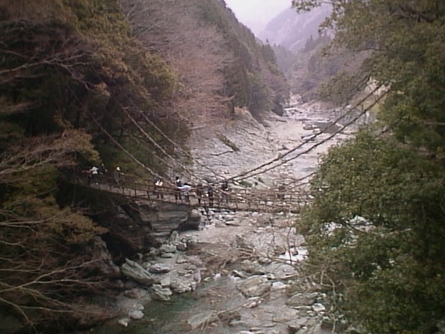 いや〜ここは景色が良いね〜 あれがかずら橋か〜 なんだ〜ただのつり橋か〜? |