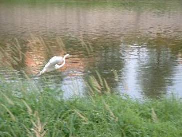 京都は鴨川ですよ。鷺? 長い脚でウォーキングです。