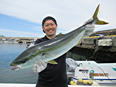 青物渋く不調でした。本日の釣果ワラサ5.0キロ1本、イナダ1本でした。朝は晴れでしたが9時頃よりドシャ降りの雨北西の風も6〜8mと強く波高となりましたが10時半頃には止んで晴れ間も見えました。 水深25〜35〜55m付近表層水温15.7〜16.2〜16.4度でした。青物実績のポイントを探りましたがベイトの反応、青物の反応も無く終始苦戦でした。 途中何とか逸れワラサ1本とイナダ1本をゲットしたのみでした。今日は途中ドシャ降りの雨風に見舞われ青物にも振られ散々でした。 お疲れさまでした。有難うございました。