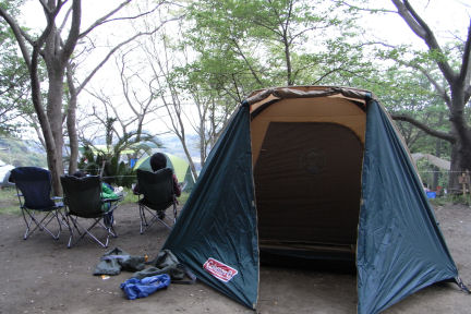 昨年夏に初キャンプを決行し、無事成功?を収めた3人が、今春、2度目のキャンプに挑戦する。行き先は、近いようで遠い千葉県・南房総。八潮でノガと合流し、ひたすら目的地を目指す…予定であったが、思いがけず、お台場方面へと来てしまった。旅にアクシデントは付き物、というわけで、オープンしたばかりのダイバーシティのガンダムを写真に収め、再び走り出した。途中、国道沿いのチェーン店でラーメンをすすり、山を越え、谷を越え、田んぼを抜けたその先に、南房総市・オレンジ村キャンプ場はあった。名前の通り、みかん農家のご主人が運営しているキャンプ場なだけあって、みかん畑特有の急斜面を利用した作りとなっていた。勾配はきついが、その分見晴らしは素晴らしく、遠く太平洋まで見渡せた。