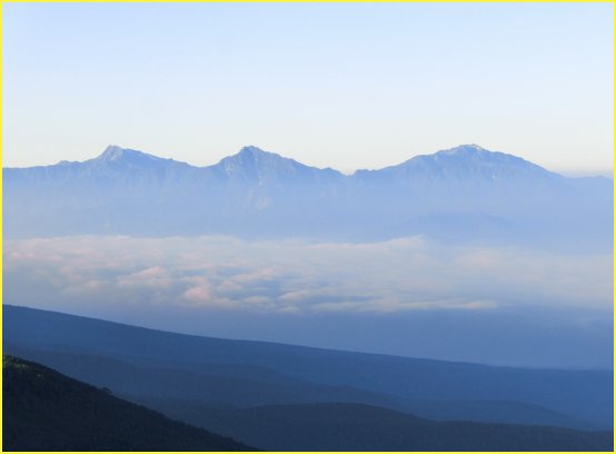左から北岳、甲斐駒ケ岳、仙丈岳。”