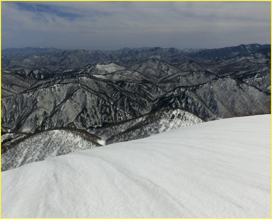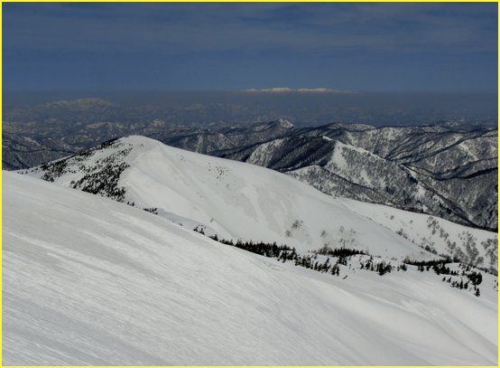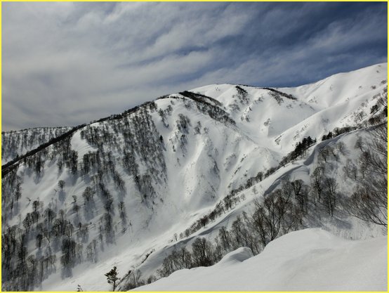 ”南東尾根1650m付近の大斜面。向いは大戸沢岳からの北東尾根。”