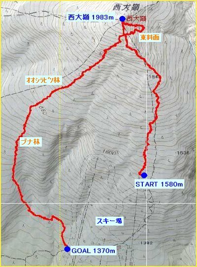 [行程 ] :スキー場トップ(1580m)9:45 - 西大巓〜東斜面(11:00-11:40) - スキー場13:20