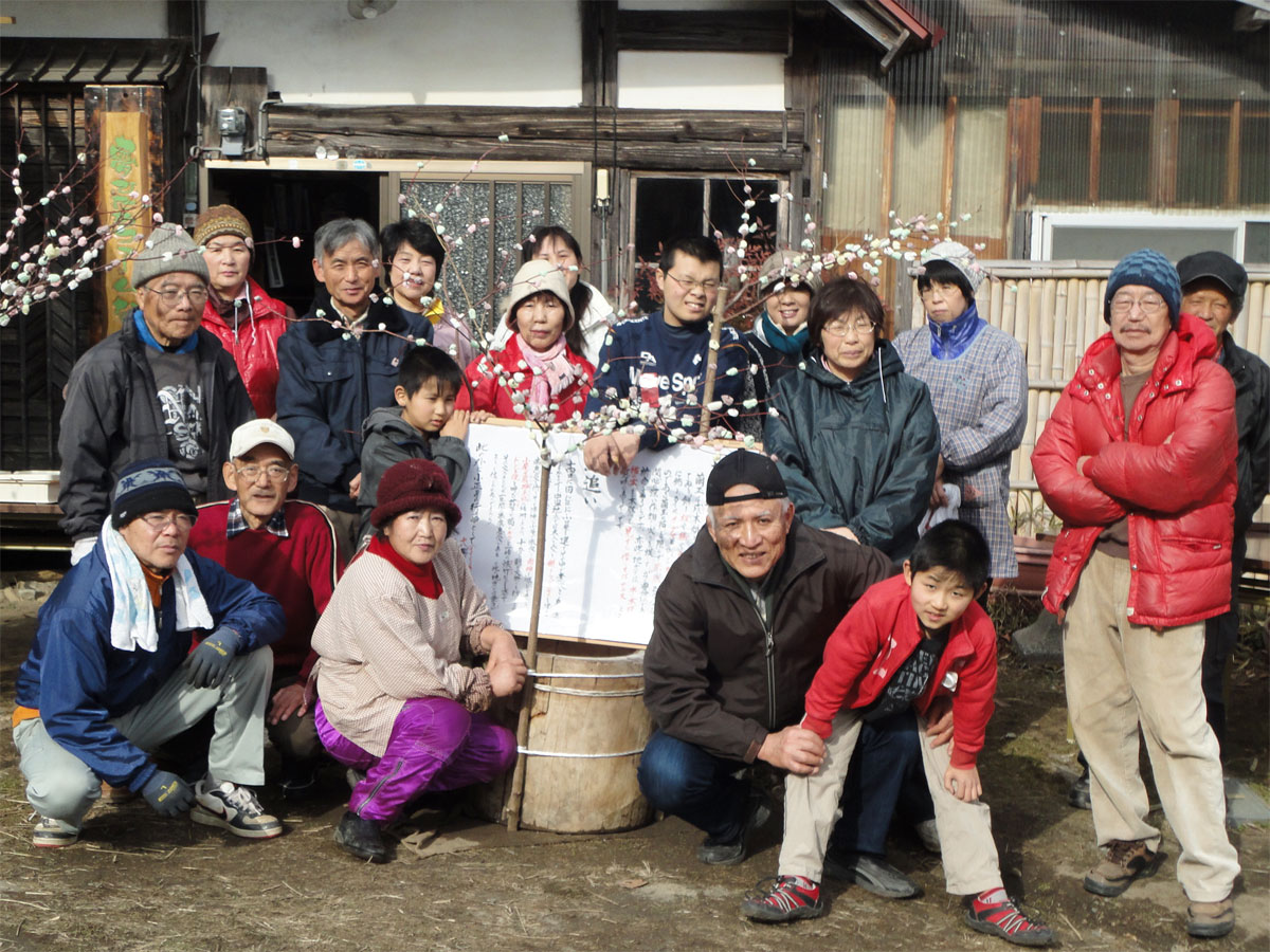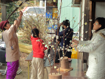 ![]() 繭玉を囲んで今年も元気で! (拡大) |