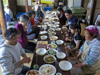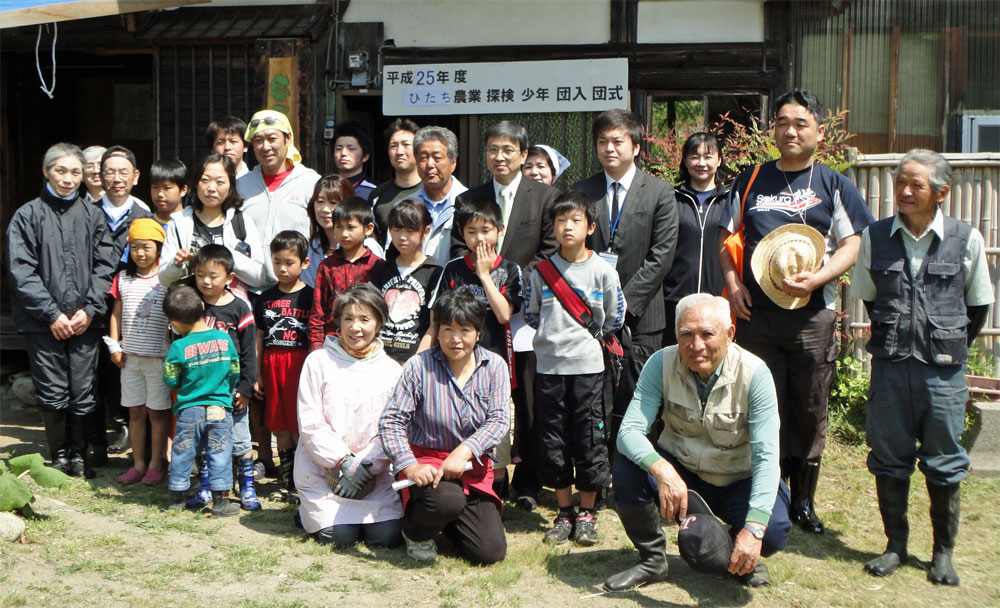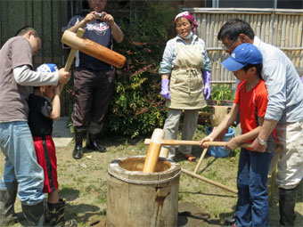 | 野山の緑も深みを増しきょうは五月晴れです。 Tガスの体験のお客さま、ひたち農業探検少年団の新しい団員さんをお迎えして、 入団式後に全員で田んぼへと移動しました。 「田植えは、初めて!ぬかるみに足をとられて大変だったよ」と 言う声も多数聞かれました。 お昼には、恒例の餅つきをして「あんこ餅」「きな粉餅」でいただきました。 |