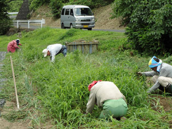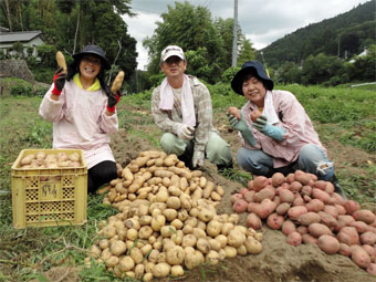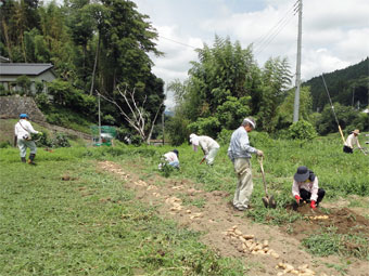 きょうの作業は、じゃがいも堀り、ねぎや人参畑の草取り、