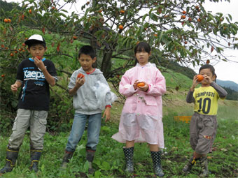 帰りに甘柿を取ったのもいい体験でした。