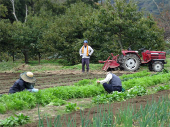 大きく育った大根、みず菜、ちんげんさいの収穫です。
