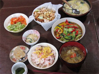 お昼は、ひなまつりも近いので、ひなあられ、ちらし寿司でした。