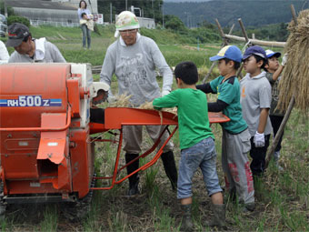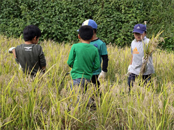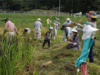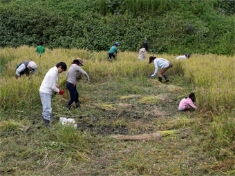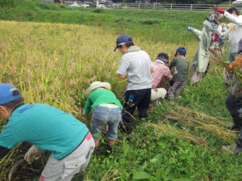 午後も、稲を刈りそれを束ねておだに掛ける作業でした。