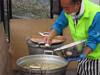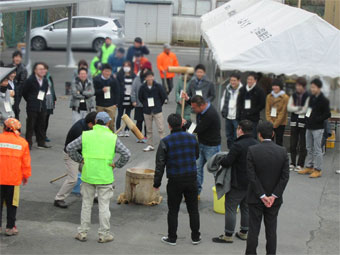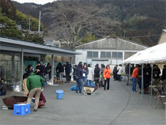 | 「茨城県北へようこそ!」、「茨城県北の魅力を一緒に楽しみましょう!」 というツアーが開催され、お昼の食事場所の設営、食事の提供をしました。 80名の元気な若者たちが、ジンギスカンバーベキューや 餅つきをしながら交流し、里山での楽しいひとときを過ごし 次の周遊地へと発たれました。 |