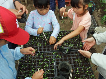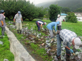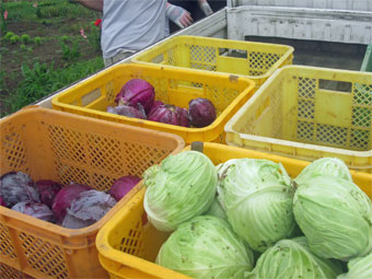 レタス苗の仮植やキャベツ、紫キャベツ、玉ネギなどの収穫を行いました。