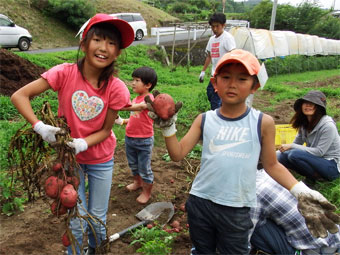 午後の部は、新ジャガイモを掘り起こして自宅へお土産に持ち帰りました。