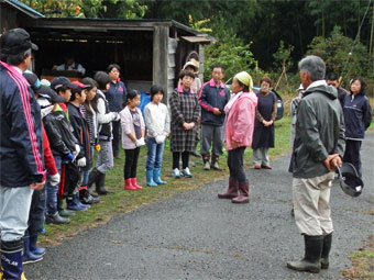朝方の雨もだんだんにはやんで塙山学区のみなさんをお迎えして