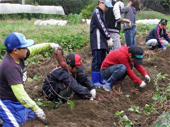 昼食をはさんでキャベツの苗を植えたりサツマイモ堀りをしました。