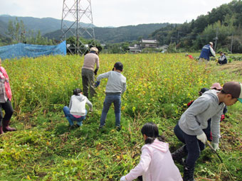 そば畑で刈り取り
