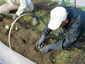 キャベツの苗植え