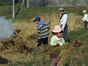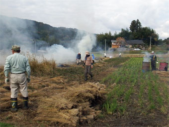 収穫を終えた田んぼの藁を燃やしきれいに整理しました。