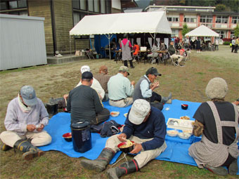 昼ご飯を持って中里ふれあい祭りが行われている会場に移動し