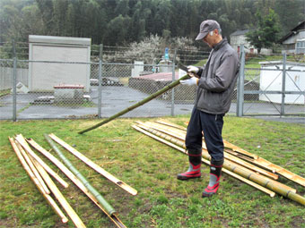 男の人達は竹を切ったり、ピザ窯の蓋の修理をしたり、レタスも