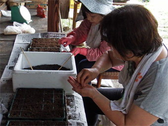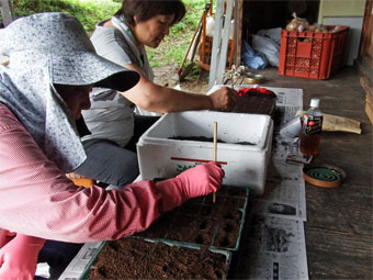 苗床をつくって穴をあけ