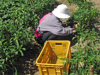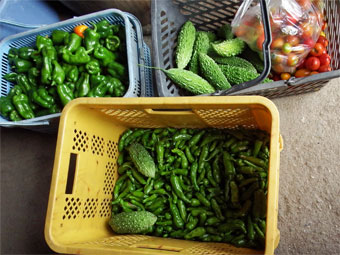 雑草を引いたりピーマンなどの野菜を収穫し自宅用に頂いて帰りました。