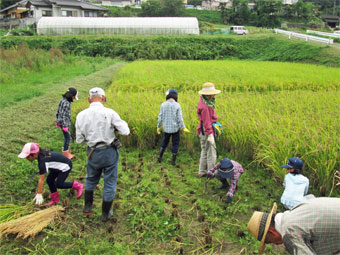 総出で稲刈り