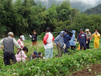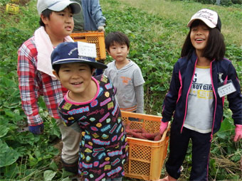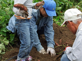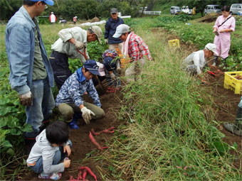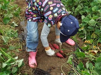 「紅あずま」「紅はるか」などのさつまいも掘り、秋野菜の手入れをしました。