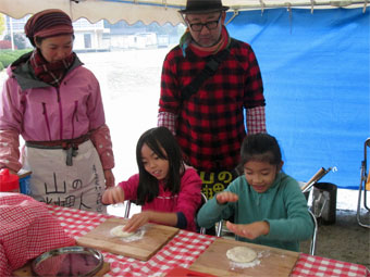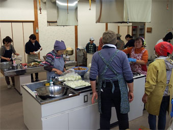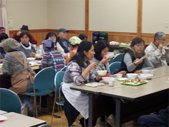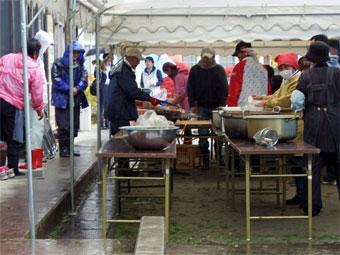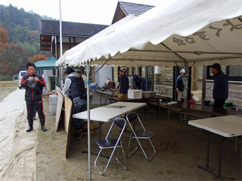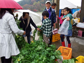 | あいにくの雨っ降りとなってしまいました。 でもたくさんのお客さまをお迎えして賑やかに収穫祭を行う事ができました。 新しいメニューのお料理もいっぱい並べられて秋の恵みに感謝の一日でした。 |
