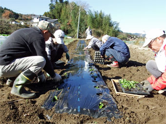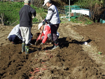 それから、今年最後のサツマイモ堀り、その後はレタスの苗植え。