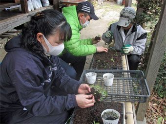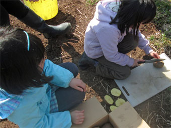 | お彼岸に入り何となく暖かさを感じるようになりました。 準備しておいた畑に出てインカのめざめ、北あかり、アンデスレッド、シャドークィン、 ノーザンルビーなどたくさんの品種のジャガイモの種を植えました。 また、レタス畑の草取り、苗起こしをした小さなレタスをポットに移植もしました。 |
