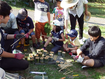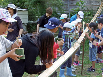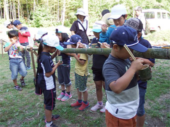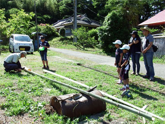 夕方は、少年団員と一緒に「流しそうめん」を楽しみました。