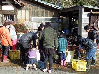 最初は芋の水洗い