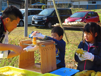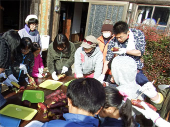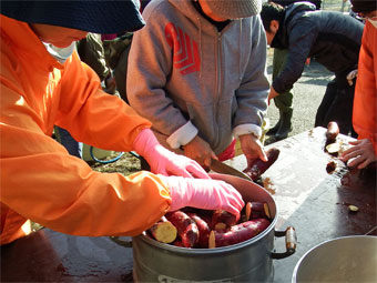 ファームで収穫した「紅はるか」「安納芋」を蒸して切り