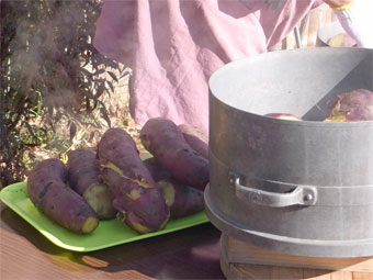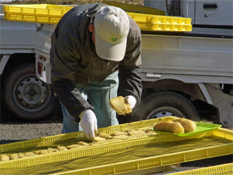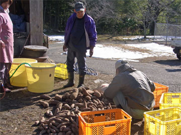 雪は残っていましたが、幸いお天気もよくて、おいしい干し芋ができそうです。