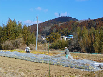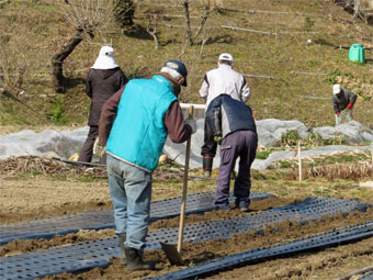 マルチ掛けの玉ネギの苗を見直しの作業を進めました。