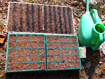 大根、白菜、ネギ・・・・などの野菜の種を小ポットに蒔きました。