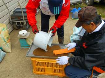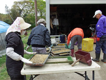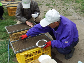 苗床の土入れ
