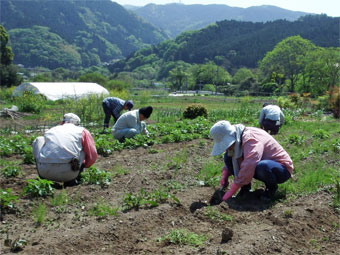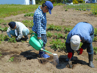 白菜畑の草を取り、虫にたべられないようネットを掛け一日の作業終了です。