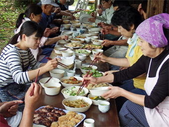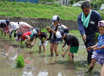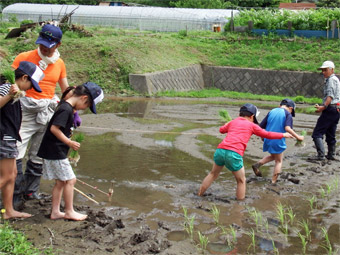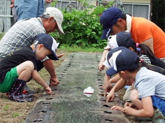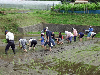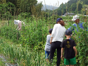 その後田んぼに出て「田植え」、午後からは旬野菜の収穫、