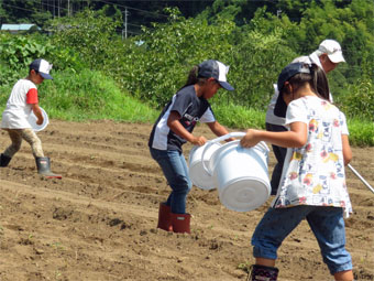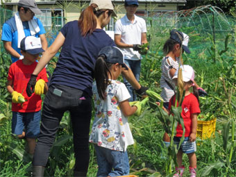 少年団員と父兄の皆さんと一緒にトウモロコシを収穫し、そばの種も蒔きました。