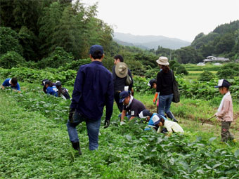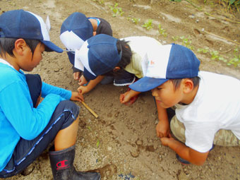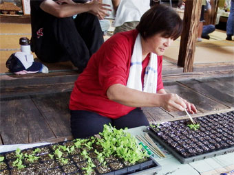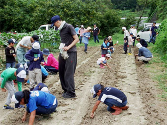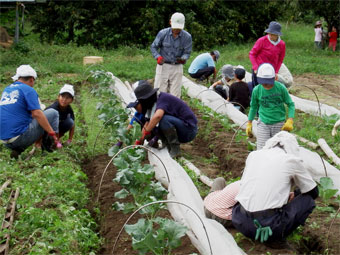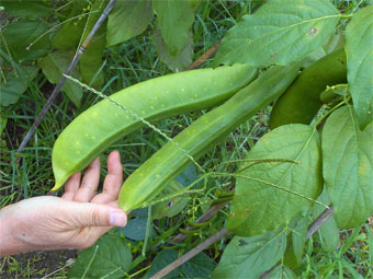 | このところ台風や秋雨前線の影響でぐずついたお天気が続いております。 少年団員と一緒に総太り大根、おでん大根、聖護院だいこん、 早生大カブなどの種を蒔いたりレタスの仮植作業をしました。 珍しい「なたまめ」も大きくなってきました。 |