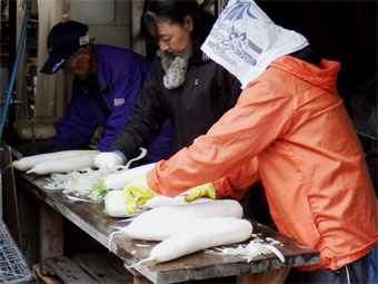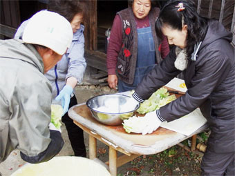 畑に出て大根、白菜を収穫しそれを美味しい漬物に