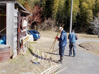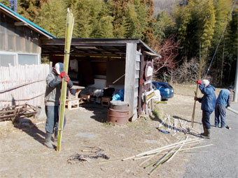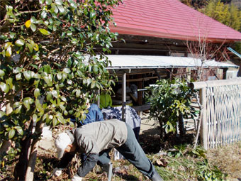 本部前の植木の剪定を行ったり竹を切る作業をしました。